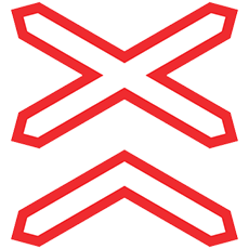 warns of a double or multiple-track level crossing without a barrier