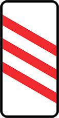 are additional warnings before a level crossing. The number of sloping stripes on signs decreases as the level crossing approaches. The stripes slope downwards towards the carriageway