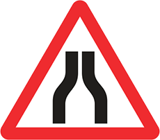 warn of a narrowing road or carriageway. The symbol of the sign shows whether the road or carriageway narrows on both sides or one side