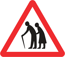 warns that the road user is approaching a section of road where elderly people may be walking on the carriageway